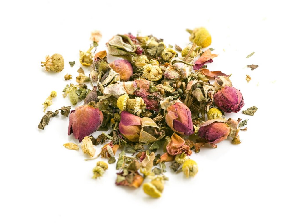 Zloženie: Zelený rooibos, tulsi, zázvor, škorica, železník, kvet rumančeka, kvet levandule, ružové púčiky, aróma.