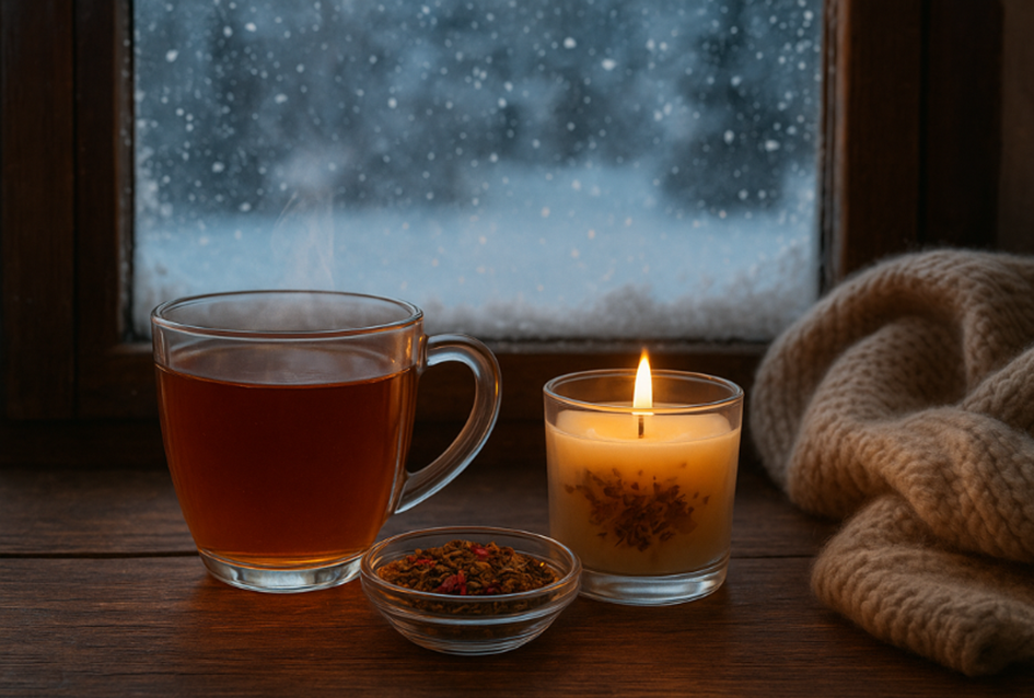 Predstav si zimný večer: za oknom ticho padá sneh, šálka horúceho čaju ti zohrieva ruky a z malého pohára vedľa sa šíri jemná vôňa sviečky, ktorú si si vyrobila sama. Zo svojho obľúbeného čaju!