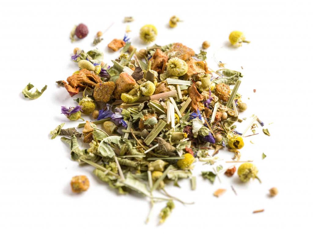 Zloženie: Rooibos, koriander, citrónová tráva, jablko, rumanček, vŕba, železník, pomarančová kôra, ďumbier, bobule hlohu, škorica, list černice a medovky, kardamón, maracuja, kvet nevädze, kvet slezu, prírodná aróma.
