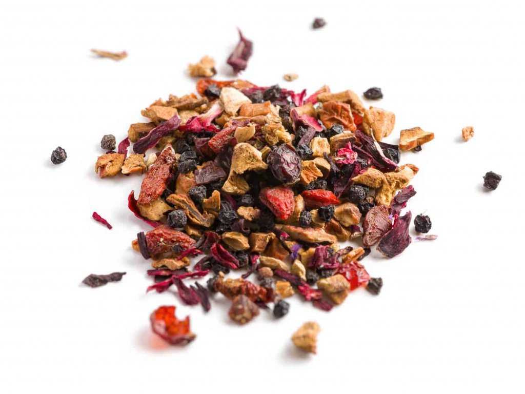 Zloženie: kúsky jabĺk, ibištek, baza čierna, šípkové šupky, bobule goji, koreň echinacey, zázvor, slezové kvety, prírodná aróma.