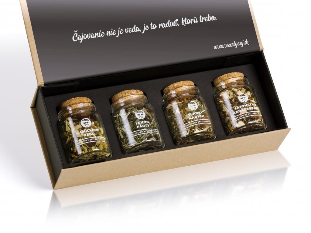 Obsahuje bylinkové čaje zabalené v sklenenom poháriku s korkovým uzáverom: