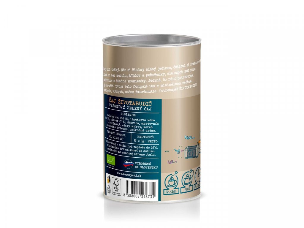 Zloženie: Zelený čaj (68 %), limetková kôra (8 %), zázvor (7 %), škorica, myrtovník citrónový,